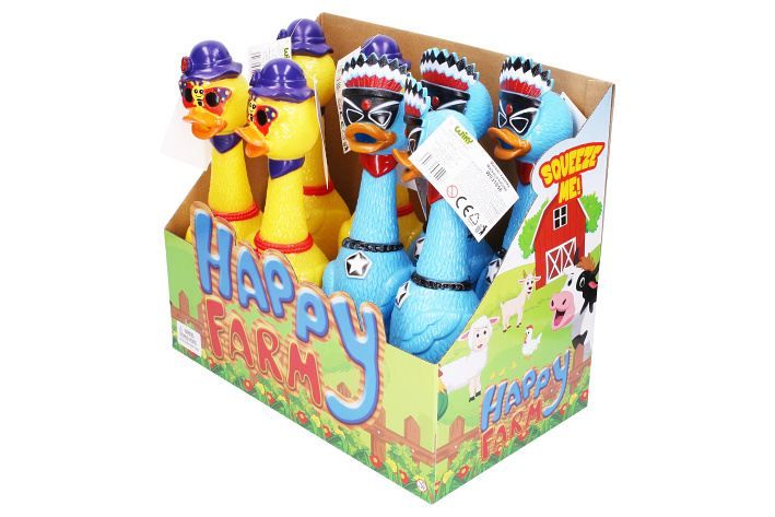 Mačkací kačenka. Velikost 31 cm. 8 ks display box. 2 varianty - modrá, žlutá.