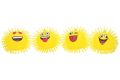 Mačkací míček s třásněmi. Velikost 10 cm. Blikající. Baterie jsou zabudované uvnitř hračky, nelze měnit.