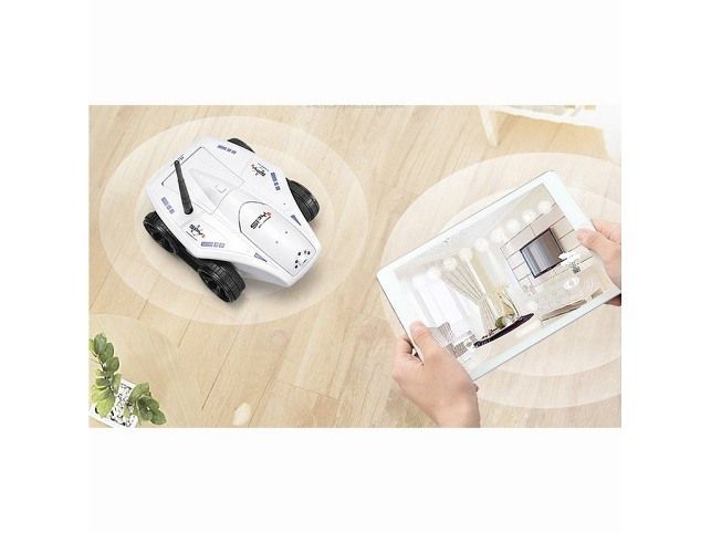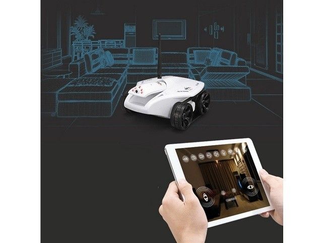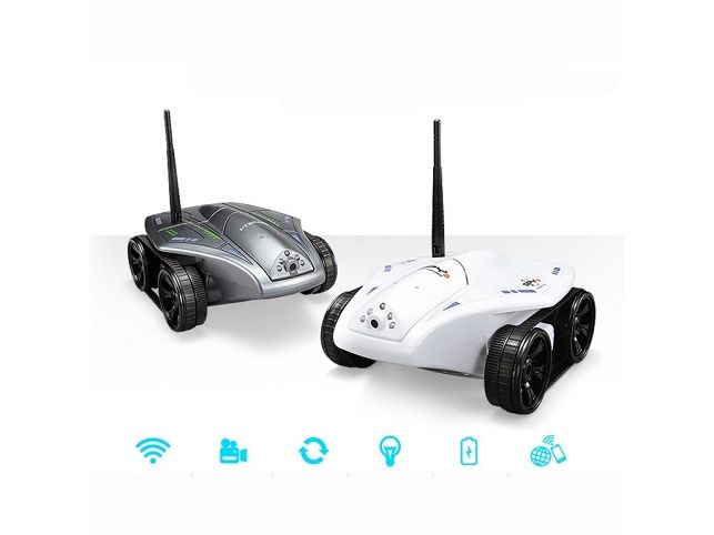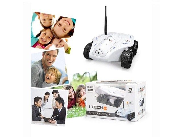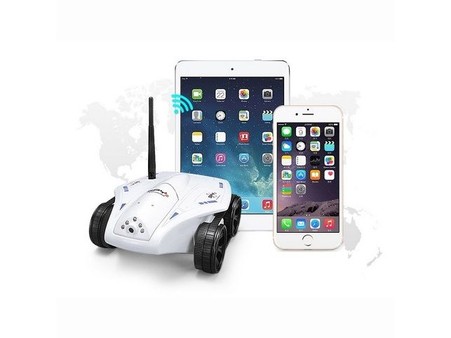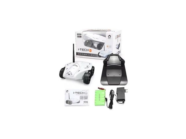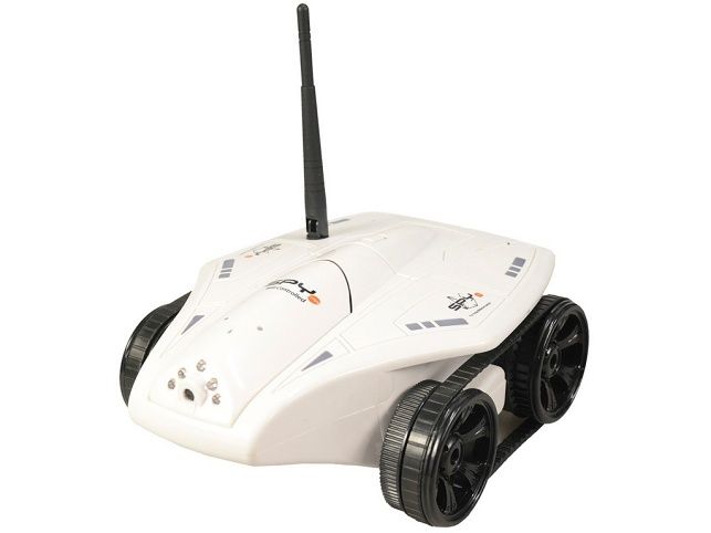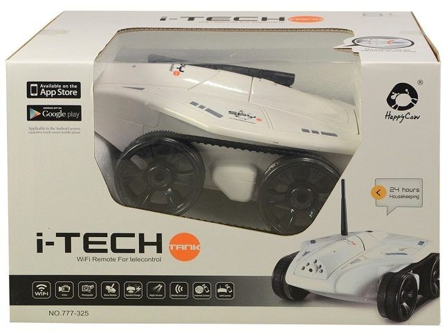 I Tech Tank s kamerou ovládaný pomocí aplikace. Skvělé vozítko pro "tajného" agenta může při své cestě pořizovat videozáznam nebo jednotlivé fotografie. Tma nevadí, tank je vybaven infrasvětlem pro noční vidění. Nejdříve je nutné stáhnout si příslušnou aplikaci pro vaše "chytré" zařízení. Aplikce je dostupná pro systém iOS i Android. Po nainstalování je nutné připojit aplikaci i tank k WiFi síti a obě zařízení spárovat. Poté je možné I Tech Tank ovládat a pořizovat videozáznam nebo fotografie. Tyto nahrané soubory je možné přehrávat a prohlížet přímo v aplikaci. Vozítko jezdí vpřed, vzad, vlevo i vpravo. Ovládat vozítko je možné klasicky tlačítky pomocí aplikace anebo po přepnutí režimu pohybu také nakláněním vašeho "chytrého" zařízení. Je možné měnit vertikální úhel pohledu kamery (pozor, tato možnost je pouze pomocí aplikace, mechanicky nastavovat úhel kamery nelze). Pokud zvolíte možnost "Audio" můžete nahrávat i zvuk. Jestliže se vozítko nepohybuje přímo, k dispozici je korekce směru pomocí trimmování. Oblast, ve které lze tank bezpečně ovládat je kolem 18 m. Napájení pomocí přiložené nabíjecí baterie 7,2 V, 1 300 mAh. Tato baterie se nabíjí přiloženou nabíječkou. Plné nabití trvá přibližně 150 minut. Doba provozu po plném nabití je cca 50 minut. Součástí balení je I Tech Tank, dokovací stanice, nabíječka, baterie 7,2 V, návod. Rozměr vozítka je 12 x 26,5 x 19,8 cm, rozměr boxu 33,5 x 22 x 23 cm.