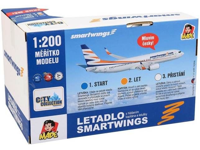 Letadlo Smartwings s hlášením kapitána a letušky, na setrvačník, 20 cm