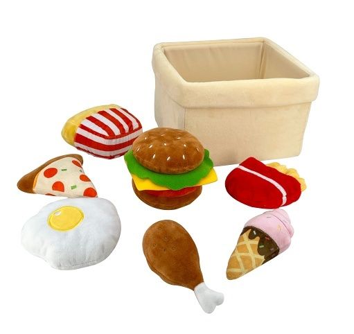 Plyšový košík s fastfoodovým jídlem je nezbytným doplňkem při hraní si na kuchaře nebo prodej jídla v restauraci, ale najde také své využití i v dětské kuchyňce. Vyšívaná tematická plyšová hračka z velmi kvalitní plyše. Sada obsahuje košík a 7 imitací fastfoodových pokrmů: hamburger, jednu porci hranolek, trojúhelník pizzy, kuřecí stehno, volské oko, muffin a zmrzlinu. Použité materiály: Vrchní látka a výplň 100% polyester, vnitřní výztuže košíku - plast. Ruční praní a čištění vlhkým hadříkem. Vhodné pro děti od 2 let.