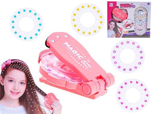 Chybí ti něco na zpestření účesu? Ozdob si vlasy barevnými kamínky. Kreativní sada obsahuje aplikátor ve tvaru žehličky na vlasy a 5 různých druhů ozdob. Vhodné pro děti od 6 let.