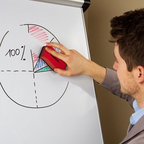 Magnetická stírací houbička na bílé tabule. Ergonomický tvar pro komfortní používání. Nezanechává stopy. Rozměr: 110 x 55 x 20 mm