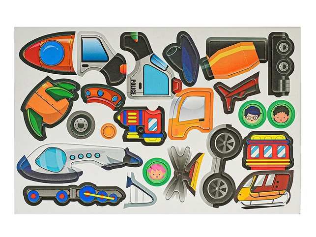 Pomáhá rozvíjet jemnou motoriku, kreativitu, procvičuje zručnost a uči děti poznávat různé značky a motorová vozidla. Kufřík je zároveň praktický skladovací prostor pro magnetické karty.