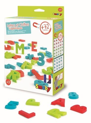 Sada velkých tiskacích písmen, číslic a znaků. Obsahuje 24 ks písmen červených, 24 ks písmen zelených, 24 ks číslic a znaků modrých, 72 ks magnetů.