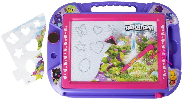 Magnetická psací tabulka velká Hatchimals. Tabulka obsahuje šablony a kreslící pero. Velikost tabulky 35×47,5×4 cm.