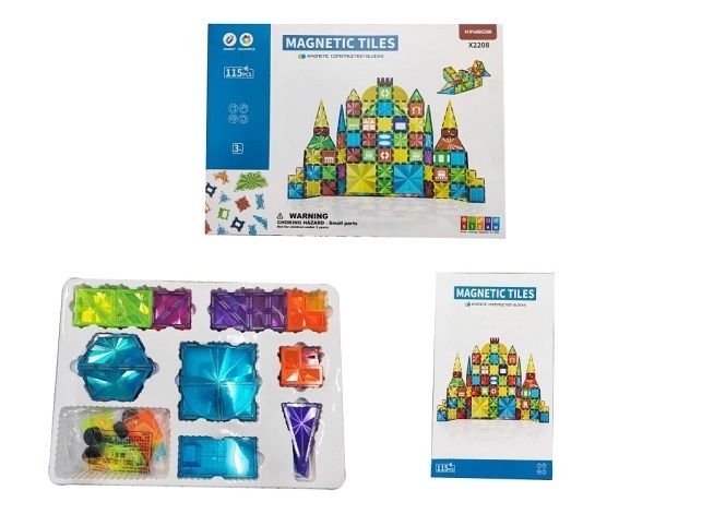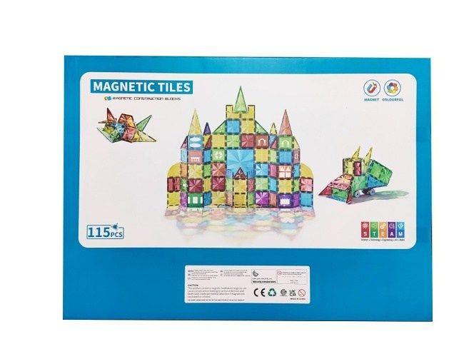 Barevná magnetická stavebnice Magnetic Tiles je ideální hračkou pro všechny malé konstruktéry. Skládá se z celkem 115 součástí jako jsou čtverce, trojúhelníky, obdélníky, šestiúhelníky a další prvky. Všechny součásti se velmi snadno propojují a vytváří z nich různé konstrukce. Hračka je určena pro děti od 3 let věku.
