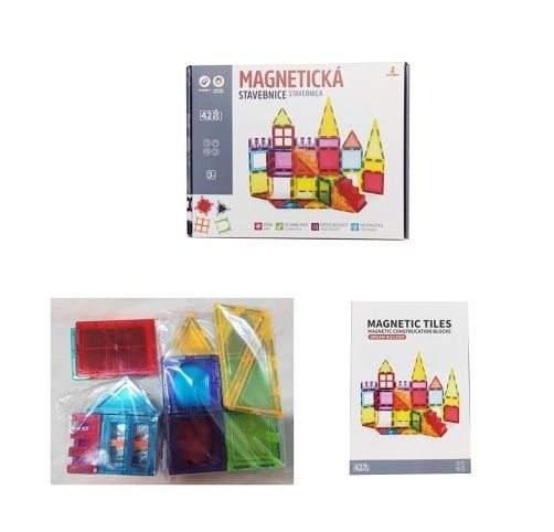 Barevná magnetická stavebnice Magnetic Tiles je ideální hračkou pro všechny malé konstruktéry. Skládá se z celkem 42 součástí jako jsou čtverce, trojúhelníky, obdélníky, šestiúhelníky a další prvky. Všechny součásti se velmi snadno propojují a vytváří z nich různé konstrukce. Hračka je určena pro děti od 3 let věku.