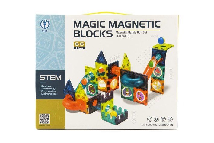 Magnetická stavebnice bloky - dráha. Zábavná hra s magnety, pomocí kterých vytváříte kreativní tvary a dráhu pro své kuličky. Po dostavení své trasy Vás čeká chvíli napětí! Projedou plastové kuličky od začátku do konce? Stavebnice zlepšuje představivost a kreativní myšlení dítěte. Skvělá vzdělávací hračka pro vzdělávání v raném dětství.