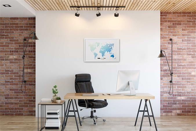 Magnetická tabule "World Map", bílá, s rámem, 60x40 cm, VICTORIA