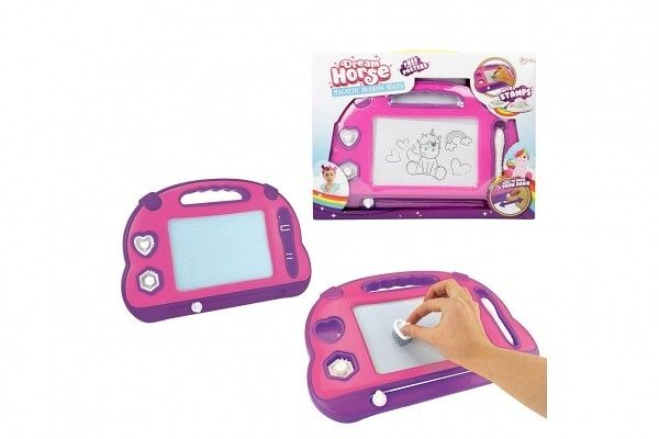 Magnetická mazací tabulka v krásném barevném provedení je kreativní pomůcka pro kreslení. A pokud se dětem obrázek nebude líbit, v mžiku ho smažou pomocí mazací lišty. Součástí balení je tužka na tabulku a dvě razítka.