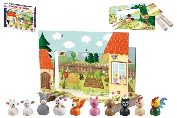 Magnetické divadlo se zvířátky do pohádky dřevo v krabici 34x23x3,5cm