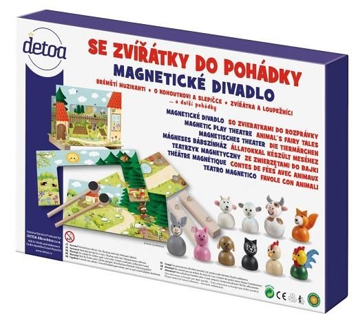 Magnetické divadlo se zvířátky je výborná zábava pro malé i velké na motivy oblíbené pohádky. Ve figurkách je vlepený magnet který se přitahuje k magnetu ve vodítku. Hra rozvíjí dětskou fantazii a kreativitu při vymýšlení vlastních pohádkových příběhů. Výrobek splňuje požadavky EU na bezpečnost hraček.
