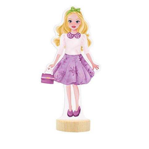 Balení obsahuje oblékací postavičku, 3 archy magnetických částí oblečení, bot a doplňků a dřevěný podstavec.