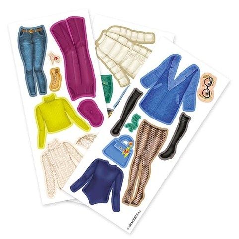Balení obsahuje oblékací postavičku, 3 archy magnetických částí oblečení, bot a doplňků a dřevěný podstavec.