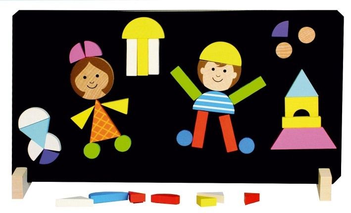 Puzzle děti obsahují magnetickou tabulku, stojánek a 40 dřevěných dílků s magnetem, z nichž lze sestavit různé obrázky. Pomáhá rozvíjet jemnou motoriku a představivost.