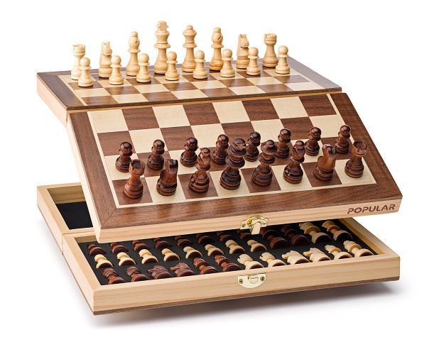 Velmi kvalitní provedení šachů v praktickém dřevěném boxu. Šachovnice je zpracována jako intarzie dvou barev dřeva. Figurky se po skončení hry umístí dovnitř. Magnetické provedení umožňuje hrát i během cestování. Součástí hry je návod. | Věk: 5+| Rozměr: 29,5 x 15,5 x 5 cm