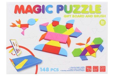Pěnové magnetické tangramy v praktické plastové krabičce. Balení obsahuje 148 kusů. Rozměry balení cca 30 x 21,5 x 4,5 cm. Věk 3+
