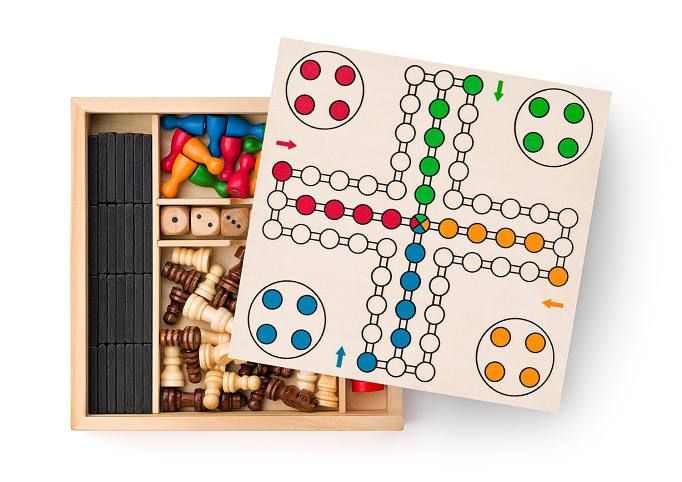 Soubor stolních her v dřevěném boxu, jehož víko tvoří oboustranná hrací deska pro jednotlivé společenské hry (šachy, dáma, člověče, nezlob se). Ke každé společenské hře najdete i příslušné figurky a hrací kosty. Součástí setu jsou i hrací kameny domina a sada hracích kostek. Magnetické provedení tohoto setu rozšiřuje jeho využitelnost i pro dlouhé cesty autem, vlakem či letadlem. | Věk: 3+| Rozměr: 18,5 x 18,5 x 4 cm