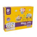 S touto sadou magnetů se vaše děti budou moci bavit doma i na cestách. Skládá se z krabice, která má magnetické pozadí s obrázkem oceánu, a prvků pro sestavení magnetických vozidel. Věrnými pomocníky vašeho dítěte během hry budou ilustrované karty zahrnuté v sadě. Některé z nich ukazují, jak sestavit různá vozidla, zatímco jiné ukazují, kde je lze řídit. Plaví loď na vodě? A kam jede vlak? Během hry se dítě bude moci bavit při hledání odpovědí na tyto a mnoho dalších otázek tím, že postaví sestavená vozidla na správné místo. Pozor! Tato hračka obsahuje magnety nebo magnetické části. Magnety přitahující se k sobě navzájem nebo ke kovovému předmětu uvnitř lidského těla mohou způsobit vážné zranění. V případě spolknutí či vdechnutí magnetů vyhledejte okamžitou lékařskou pomoc.