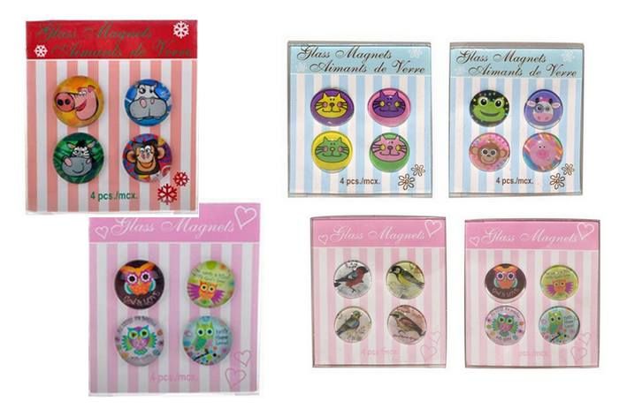 Krásné skleněné magnetky na uchycení poznámek nebo obrázků na nástěnkách a lednicích. Magnetky jsou vyráběny v několika motivech. V každém balení najdete 4 skleněné magnetky se zvířátky. 2,3 cm