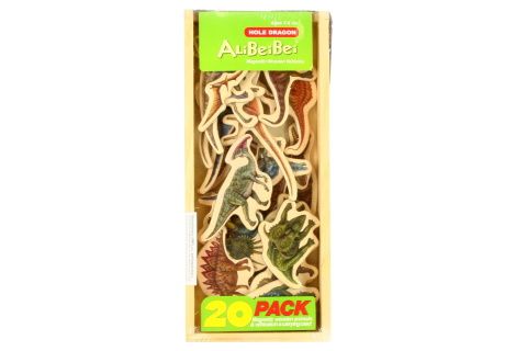 Magnety Dino 20 ks - rozměr magnetu cca 6 - 9 cm x 4 -6 cm dle druhu.Magnety v dřevěné krabičce s plastovým víkem a v horní části s uchem na nošení - rozměr balení cca 12 cm X 27,5 cm X 3 cm.Věk 3+