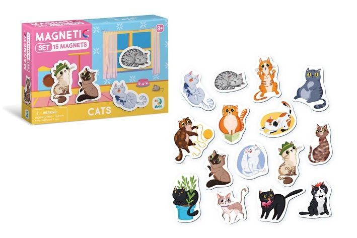 Objevte kouzlo kočičího světa s magnety Kočky! Sada obsahuje 15 krásně ilustrovaných magnetů, které představují různé kočičky. Ideální pro děti, které se rády učí o a zároveň rozvíjejí jemnou motoriku.