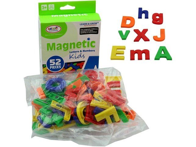 Magnety, písmena, 52 kusů, 4,5 x 3 cm. Můžou být skvělou naučnou pomůckou, když se dítě učí rozeznávat písmenka. Písmenka ale moho posloužit i k zanechání krátké zprávy. Využití je široké. Písmenka mají mnoho různých barev, které slouží k lepšímu zapamatování. Jejich materiál je plast. Každé z písmenek má magnetek díky, kterému je možné je uchytit třeba na magnetickou tabuli. Jaké bude Vaše využití písmenek?Rozměr je cca 4,5 x 3 cm. Materiál je plast. Balení je box. Rozměr balení 13,5 x 5 x 24 cm. Hračka je určena pro děti 3+.