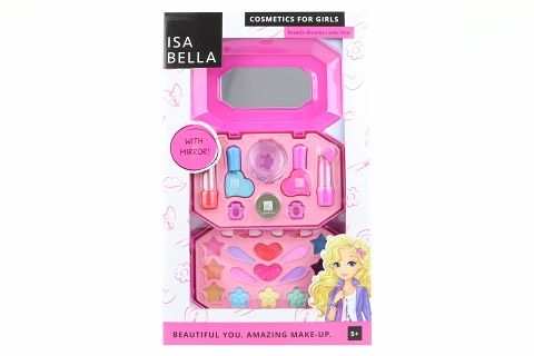 Sada make-upu obsahuje oční stíny a třpytivý gel, rtěnky, lak na nehty. Součástí je také zrcátko, aplikátory a skřipečky. Vše baleno v praktickém dvoupatrovém pouzdře se zrcátkem. Rozměry pouzdra cca 11 x 17 cm. Rozměry balení cca 37,5 x 23 x 4 cm. Věk 5+