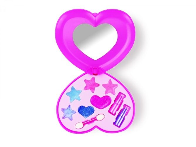 Sada make upu v malé uzavíratelném srdíčku. Rtěnky a oční stíny jsou zdravotně nezávadné.