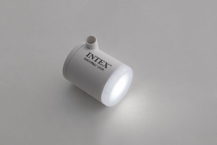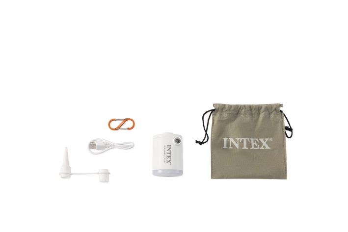 Malá elektrická pumpa Quickfill USB200R od značky Intex je kompaktní a lehké zařízení navržené pro rychlé nafukování lehkých předmětů, jako jsou nafukovací matrace, plážové hračky nebo lehátka. Pumpa má cylindrický tvar s bílým plastovým tělem, na kterém je decentně umístěno logo výrobce a modelové označení. Díky svému malému rozměru a nízké hmotnosti je velmi snadno přenosná a lze ji pohodlně využívat jak doma, tak při venkovních aktivitách a kempování. Zařízení je napájeno vestavěnou baterií o napětí 3,7 V, která je součástí balení, a lze ji dobíjet pomocí přiloženého USB-C kabelu. Pumpa dosahuje průtoku vzduchu až 200 litrů za minutu, což umožňuje rychlé a efektivní nafukování. Doba nabíjení se pohybuje mezi 2 až 3,5 hodinami, výdrž baterie je přibližně 18 minut provozu a vestavěné LED světlo s výdrží až 6 hodin může sloužit i jako lucerna, což je praktické zejména při kempování či večerních aktivitách. Součástí balení jsou dvě vyměnitelné násadky, které jsou kompatibilní s různými typy ventilů nafukovacích produktů. Pumpa je vybavena praktickým oranžovým karabinovým úchytem, který usnadňuje přenášení nebo zavěšení na batoh či stan. Ovládání je jednoduché, s tlačítkem pro zapnutí a indikátorem nabíjení umístěným na boční straně pumpy. Díky svému designu a funkční výbavě představuje Quickfill USB200R spolehlivý pomocník pro nafukování během letních sportovních aktivit i volnočasových pobytů venku. Na baterie: 1x 3,7V (je součástí balení)