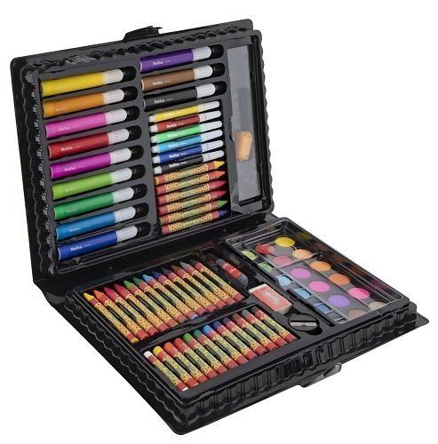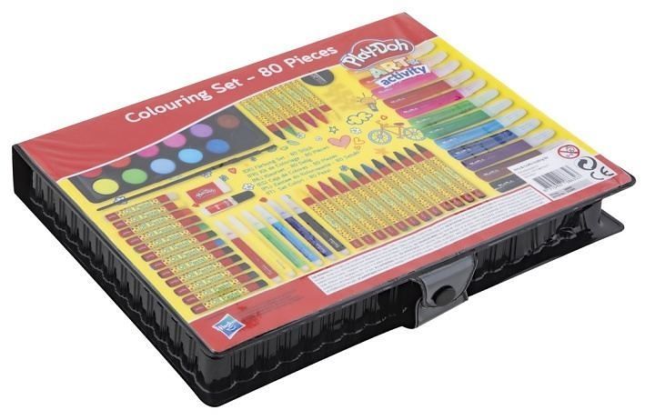 Malířská sada pro malé malíře Play-Doh obsahuje 80 ks potřeb pro malíře – vodovky, voskovky, fixy, ořezávátko, gumu, pravítko, štetce atd.