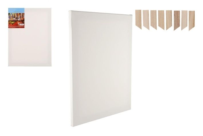 Vysoce kvalitní malířské plátno o rozměru 30x40 cm s gramáží 380 g/m2, 100% bavlna, 3x šepsováno. Plátno je natažené na rám z borového dřeva. Připraveno k okamžitému malování, jak akrylovými, tak olejovými barvami. Součástí balení je 8 dřevěných vypínacích kolíků.