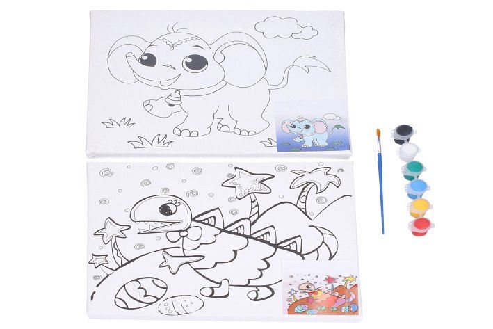 Malířské plátno s předlohou o velikosti 30x24 cm + barvy a štetec.