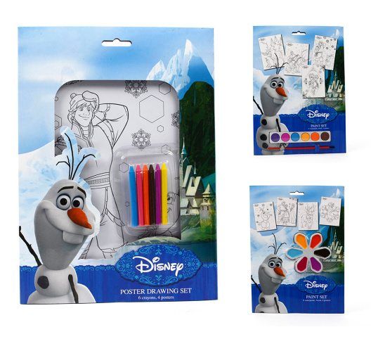 Malířské šablony Ledové království – 4 ks šablon v sadě. Sadaobsahuje štětec + vodové barvy nebo voskovky.