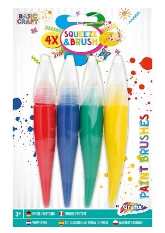 Malířské štětce barvící – zmáčkni barvu a můžeš rovnou malovat – 4 barvy – žlutá, modrá, červená a zelená.