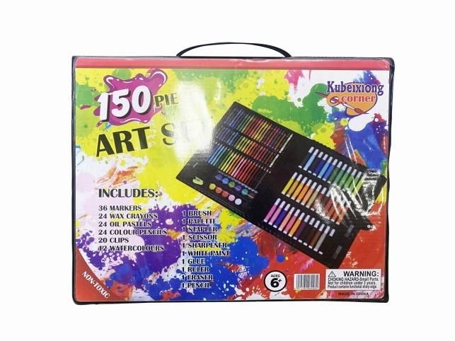 Kompletní sada pro malé i velké umělce! Tento bohatý kreativní set nabízí širokou škálu výtvarných potřeb – ideální na doma, do školy i na cesty. Vše přehledně uložené v praktickém kufříku. Obsah balení: ?? 36 fixů ?? 20 voskovek ?? 24 olejových pastelů ?? 24 barevných tužek ?? 12 akvarelových barev ?? 20 spon ?? Netoxické provedení – bezpečné pro děti Celkem 150ks pomůcek pro tvoření! Vše na jednom místě pro hodiny tvořivé zábavy!