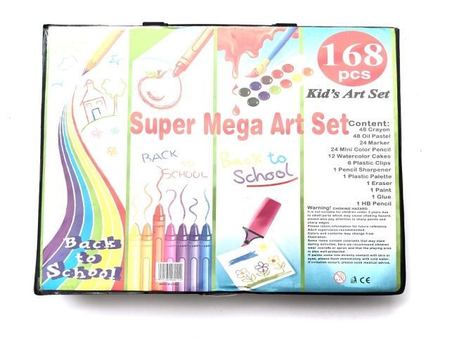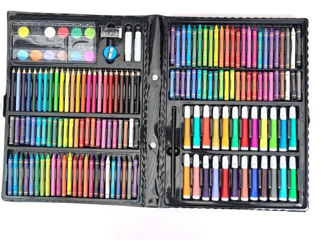 Skvělý výtvarný set pro všechny malé i velké umělce! Vše přehledně uspořádáno v praktickém kufříku, který je ideální na doma i na cesty. Obsah balení: ?? 48 olejových pastelů ?? 24 fixů ?? 24 mini barevných tužek ?? 12 akvarelových barev ?? 6 plastových sponek ?? Paleta, guma, lepidlo, tužka 168 kreativních pomůcek pro malování, kreslení i tvoření – perfektní dárek pro všechny milovníky výtvarného umění!