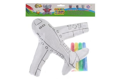 Vybarvovací letadlo s fixy. Letadlo lze vybarvit, poté vyprat a znovu vybarvit. Rozměr letadla cca 20 x 24 cm. Materiál polyester. Obsahuje 4 fixy. Rozměry balení cca 21,5 x 21 cm. Věk 3+