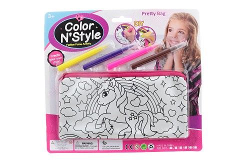 Vybarvovací pouzdro (penál) s motivem jednorožce. Zapínání na zip. V balení pouzdro a 4 barvičky. Baleno na kartě. Rozměry balení 23x21x1 cm. Rozměry pouzdra 19x10 cm. Věk 3+