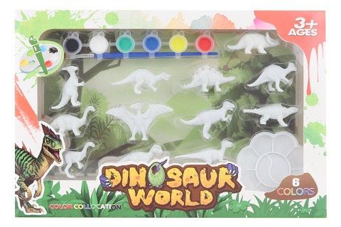 Sada 3D malovacích dinosaurů. Balení obsahuje 6 barev, štětec a paletu. Rozměry balení cca 32 x 21 x 3 cm. Věk 3+