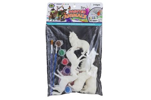 Sada malovacích zvířátek. Balení obsahuje plastové figurky zvířátek k vybarvení. Balení dále obsahuje 6 barev, 2 štětečky a paletku. Rozměr zvířátka cca 8 cm (dle druhu). Rozměry balení cca 18 x 25 x 3,5 cm. Věk 3+