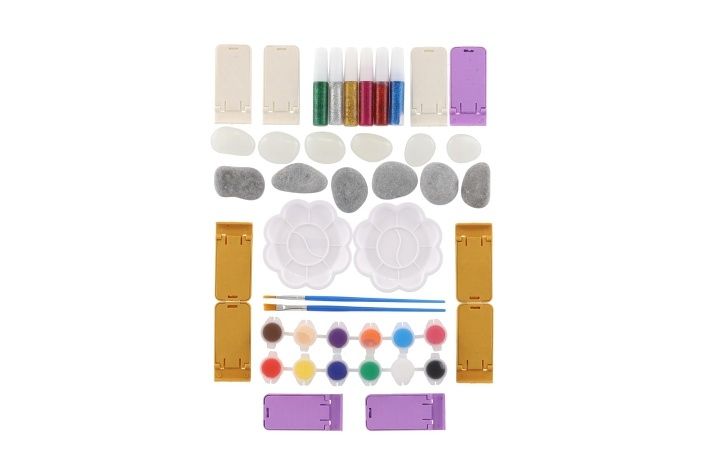 Malování na kameny/oblázky svítící ve tmě s barvami se štětci created s doplňky v krabičce
