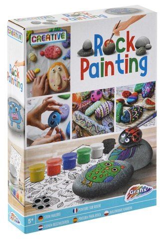 Sada pro malé kreativce! Nalepte na kámen některou z přiložených samolepek nebo na kámen namalujte cokoli, co Vás napadne. Tato sada se skládá ze tří kamenů, šesti barev, štětce, archu samolepek a šesti oči, kterými můžete skvěle oživit svá díla.