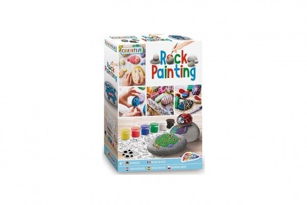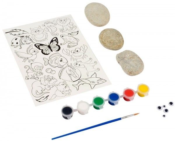 Sada pro malé kreativce! Nalepte na kámen některou z přiložených samolepek nebo na kámen namalujte cokoli, co Vás napadne. Tato sada se skládá ze tří kamenů, šesti barev, štětce, archu samolepek a šesti oči, kterými můžete skvěle oživit svá díla.