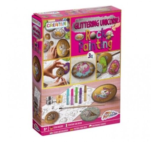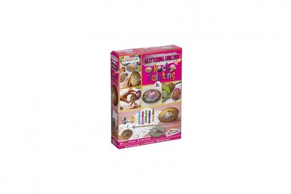 Malování na oblázky/kameny třpytivý jednorožec kreativní sada v krabičce 16x21x4cm