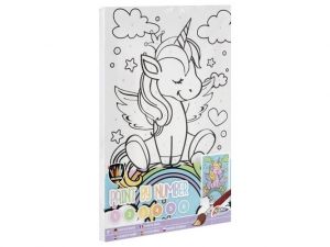 Malování podle čísel – 4 různé druhy – želva, holčička, jednorožec a opička. Balení obsahuje obrázek, štětec a vodové barvy.