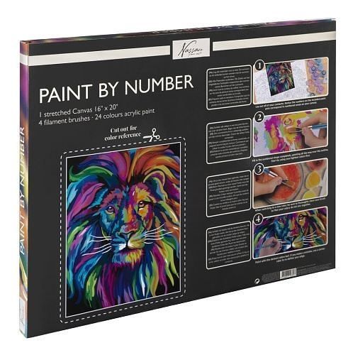 Malování podle čísel – balení obsahuje plátno s obrázkem 50×40 cm, 4 ks prémiových štětců, 24 akrylových barev.
