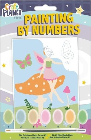 Plátno A5 210 x 148 mm, 7 x akrylové barvy a štětec. Akrylová barva poskytuje dobré krytí na desce, která je potištěna jednoduchým designem, který je číslován, aby děti vedly, kde použít vhodnou barvu. Tento projekt je navržen tak, aby umožnil začínajícímu umělci vytvořit umělecké dílo, na které může být hrdý.