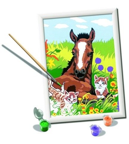 CreArt – to je kreativní zábava doslova pro každého. Staňte se na chvíli profesionálním malířem a namalujte si svůj vlastní obraz. Tito veselí kamarádi ze zvířecí říše rozzáří každou zeď. Postupně vybarvujte jednotlivé plochy podle návodu (každé číslo na plátně odpovídá jedné konkrétní barvě) a dopřejte si radost z tvůrčí práce, u které se zabavíte na dlouhé hodiny. Malování je skvělá činnost, která nejen baví, ale také procvičuje zručnost, zlepšuje koncentraci a zaručuje spokojenost a pocit hrdosti všem umělcům. Set obsahuje vše, co potřebujete k malování: vysoce kvalitní, pevný kartonový podklad s obrazovou předlohou s očíslovanými plochami, sadu akrylových barev, štětec, kartonový stojánek pro kelímky s barvami a rámeček. Vykreslené plochy vytváří profesionálně vypadající umělecké dílo. Jakmile obraz dokončíte, nechte ho zaschnout a zarámujte ho do rámečku, který je součástí balení. Malování nikdy nebylo tak jednoduché.